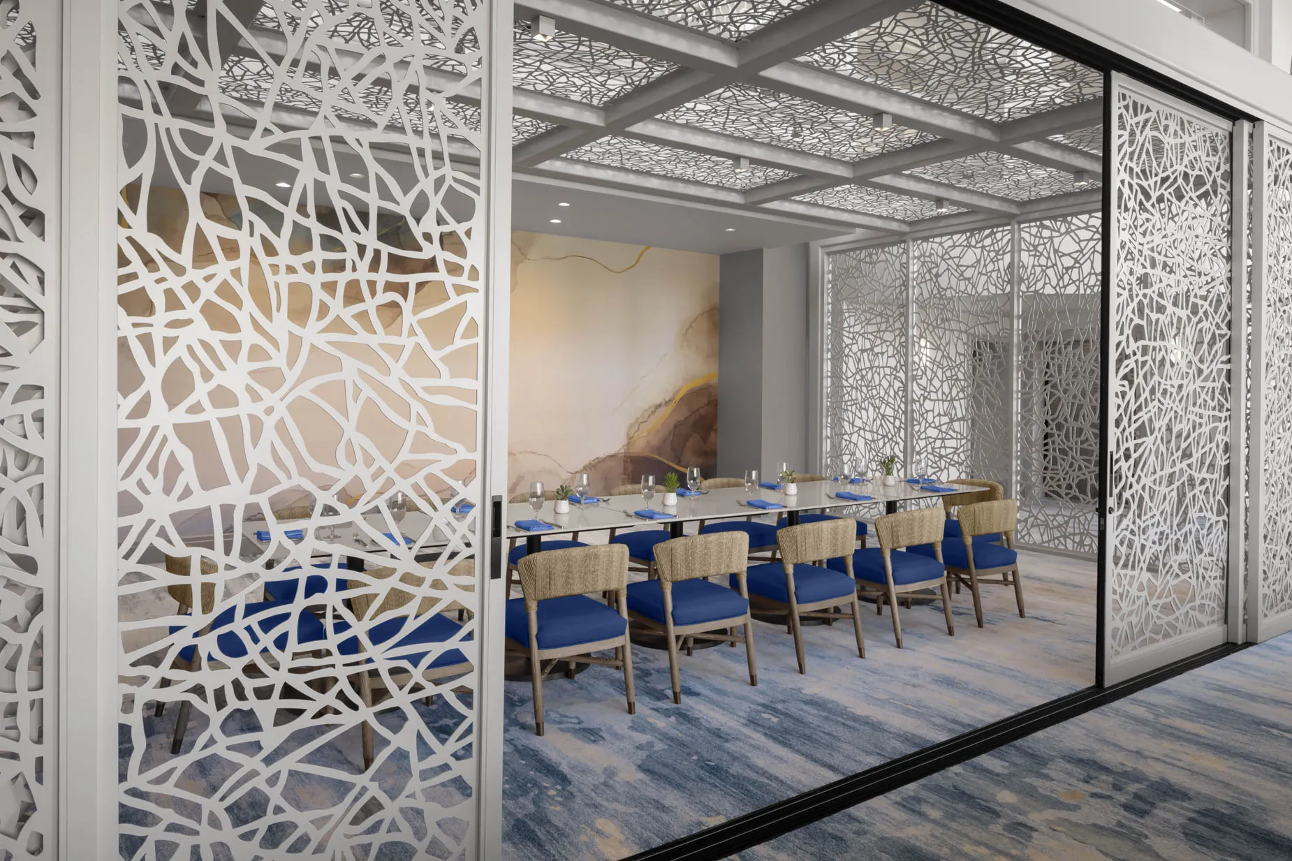 Whether hosting a milestone dinner, executive meeting, or special occasion, guests are surrounded by the ambiance that defines La Luz: grand arched windows that frame the desert landscape, custom lighting that glows with soft radiance, and design details that bring the beauty of the Sonoran outdoors in. The room provides a secluded retreat within the heart of the restaurant, offering a seamless blend of privacy and comfort.